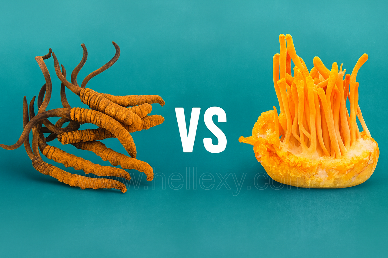 Два види кордицепса настільки схожі на властивості, що мають однакові переваги. Однак існують деякі відмінності в хімічному складі, і тому вони мають різний ступінь подібних переваг. Основна відмінність гриба Cordyceps sinensis від Cordyceps militaris полягає у концентрації двох сполук: аденозину та кордицепіну. Дослідження показали, що Cordyceps sinensis містить більше аденозину, ніж Cordyceps militaris, але не містить кордицепина.